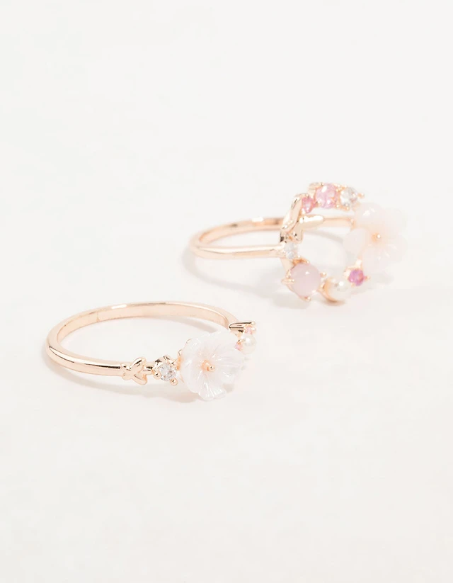 Rose Gold Plated Floral Stone Stacking Ring Pack