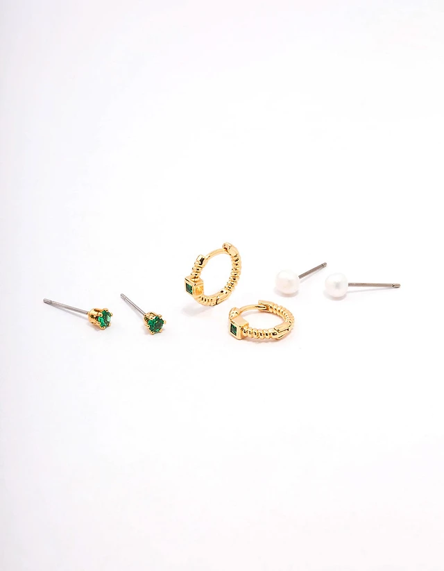 Gold Plated Cubic Zirconia Dainty Earring Pack