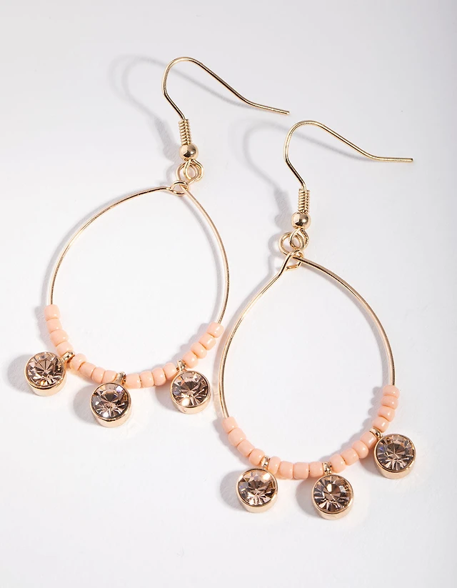 Pink Stone Drop Huggie Earrings