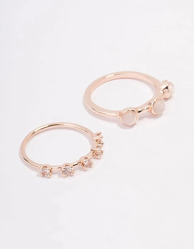 Rose Gold Statement Stone Rings 2-Pack