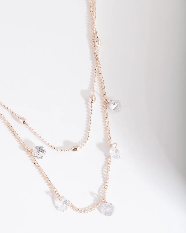 Rose Gold Cubic Zirconia Necklace Earrings Set