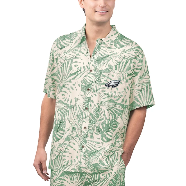 Men's Margaritaville Midnight Green Philadelphia Eagles Sandwashed Monstera Print Party Button-Up Shirt