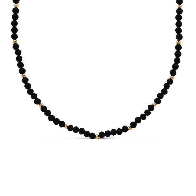 316L Surgical Steel Gold PVD Black Agate Dainty Beaded Hinged Clicker Hoop