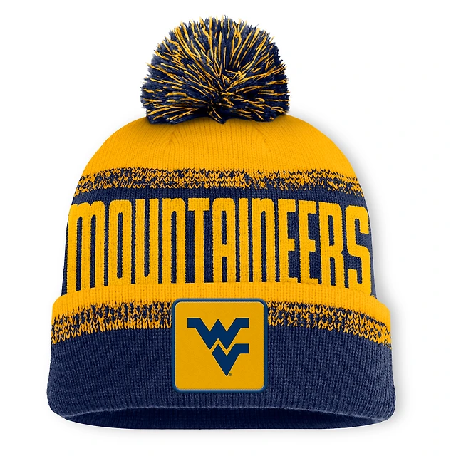 Men's Fanatics Navy/Gold West Virginia Mountaineers Thrive Cuffed Knit Hat with Pom
