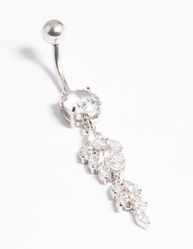Gold Plated Titanium Threadless Crystal Pear Belly Bar