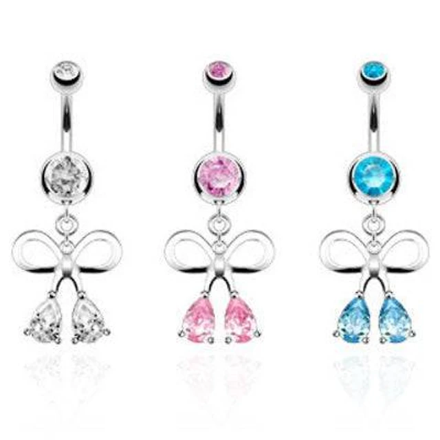 316L Surgical Steel Belly Button Navel Ring with Long Star Drop Dangle