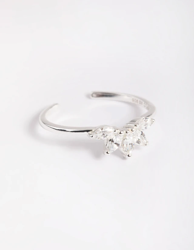 Cubic Zirconia Floral Ring Sterling Silver