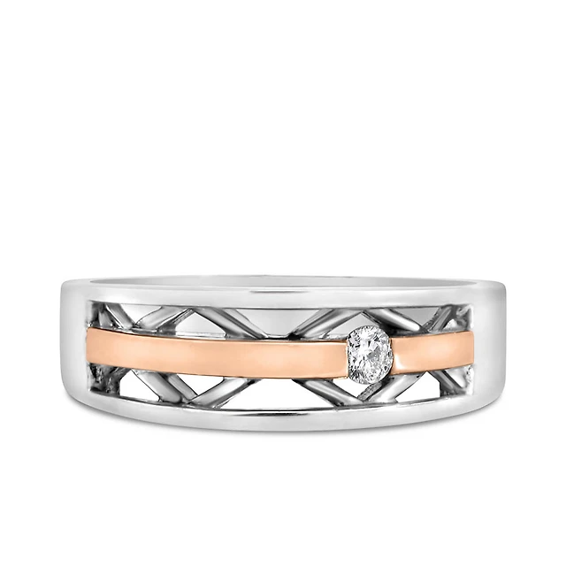 Men’s Ring with .09 Carat Diamond in Sterling Silver and 10kt Rose Gold