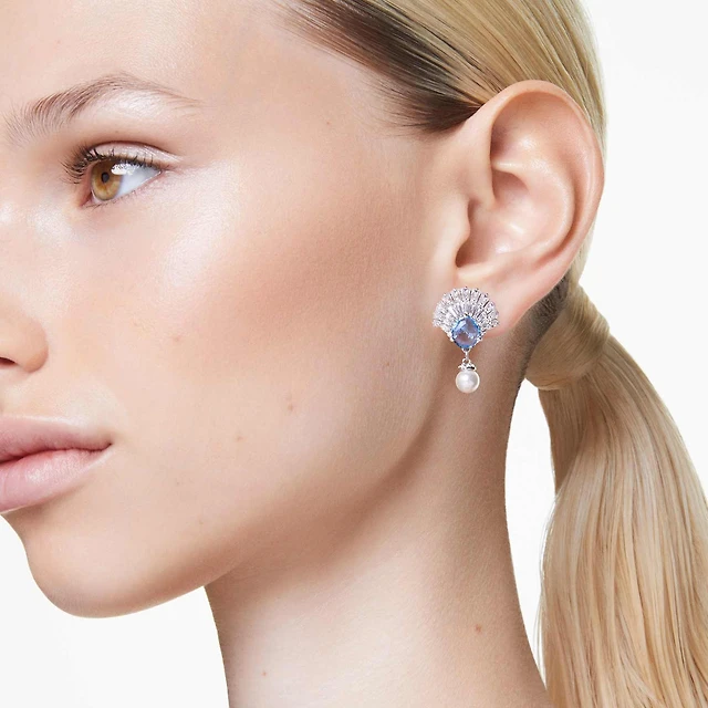 Satin Blouse, Pants & Cascading Crystal Earrings