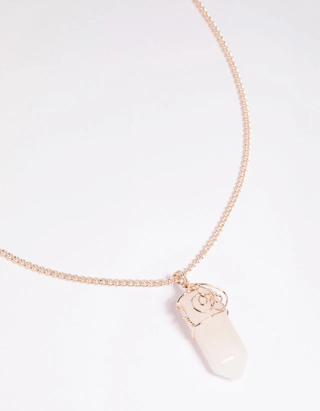 Pendant with White Topaz, Moonstone, and Rose Quartz in Rose Tone Sterling Silver with Chain