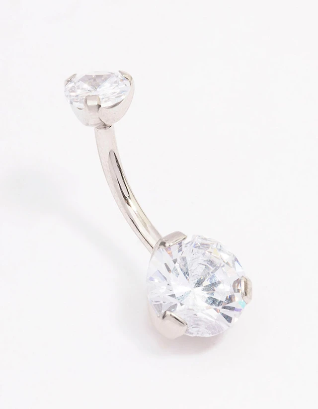 Surgical Steel Cubic Zirconia Double Threadless Belly Bar