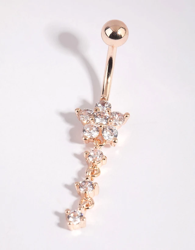 316L Surgical Steel Rose Gold PVD White CZ Flower Vine Dangle Belly Ring