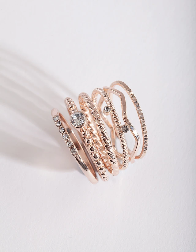 Rose Gold Opal Embellished Ring Pack