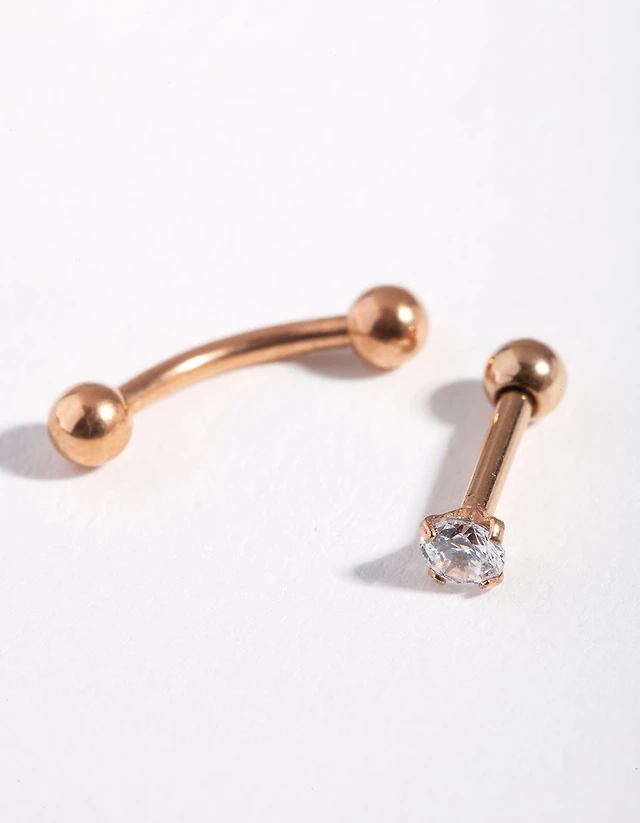 Rose Gold Ball & Cubic Zirconia Barbell Pack