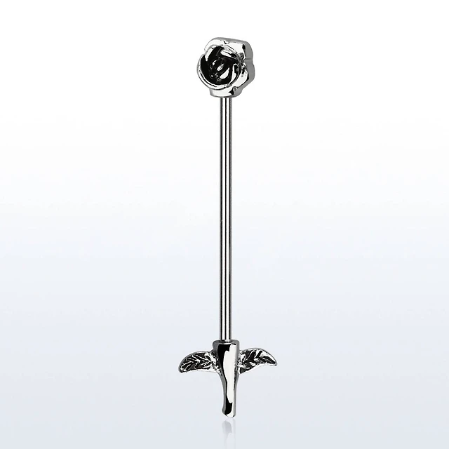 316L Surgical Steel Rose Flower and Stem Industrial Straight Barbell