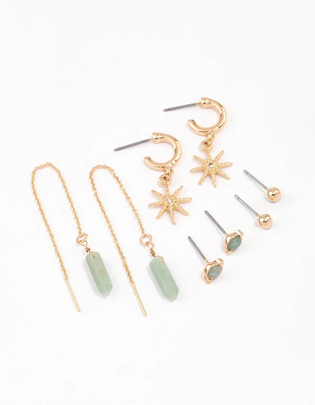 Gold Mixed Celestial & Thread Through Earrings 4-Pack