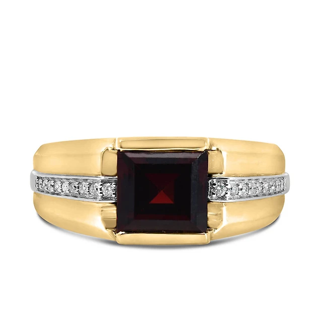 Ring with Garnet and .08 Carat TW of Diamonds in 10kt White Gold