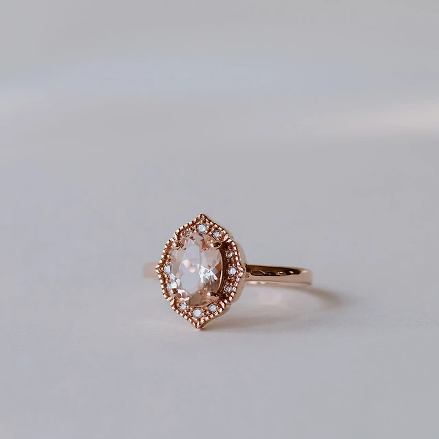 Ring with Morganite and .21 Carat TW of Diamonds in 14kt Rose Gold
