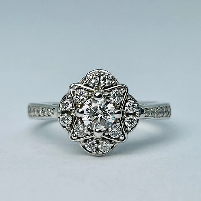 Halo Engagement Ring with .79TW of Diamonds in 14k White Gold
