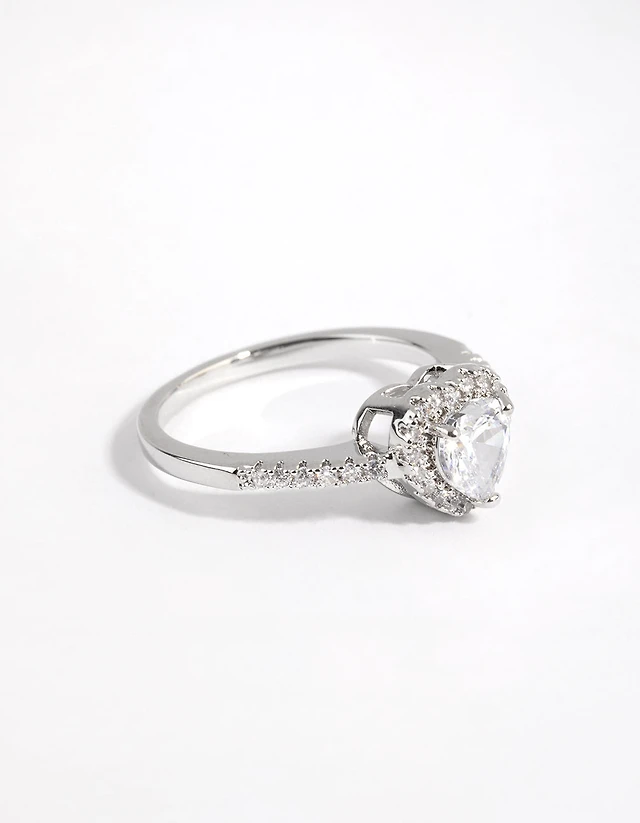 Silver Cubic Zirconia Centre Stone with Halo Ring