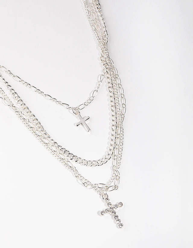 Mixed Metal Classic Diamante Cross Necklace Pack