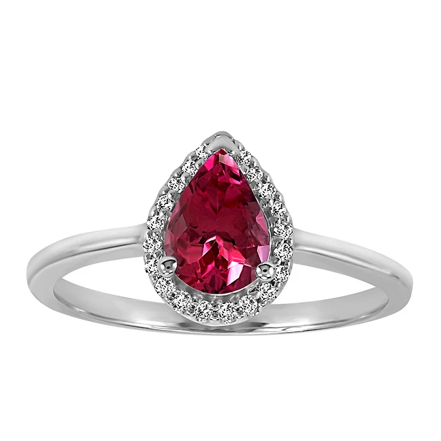 Halo Ring with .17 Carat TW of Diamonds and 7x5MM Pear Shape Ruby in 10kt Yellow Gold