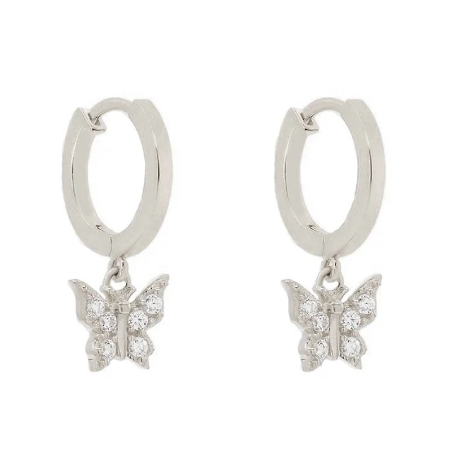 Pair of 925 Sterling Silver Diamond CZ Butterfly Dangle Minimal Hoop Earrings