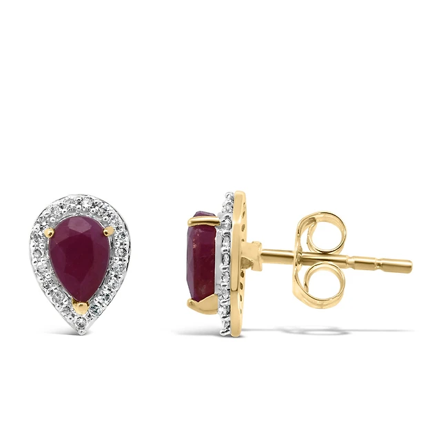 Previously Owned - Pear-Shaped Lab-Created Ruby and 0.067 CT. T.W. Diamond Drop Earrings in 10K Gold