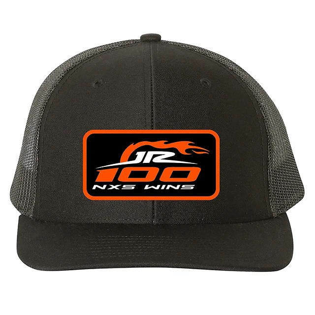 Men's JR Motorsports Official Team Apparel Black 100th Xfinity Series Wins Trucker Snapback Hat
