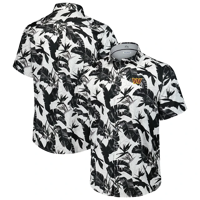 Men's Margaritaville Black San Francisco 49ers Sandwashed Monstera Print Party Button-Up Shirt