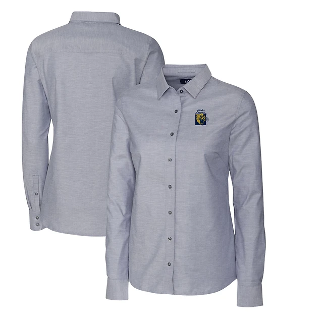 Women's Cutter & Buck Charcoal FIU Panthers Oxford Stretch Long Sleeve Button-Up Shirt