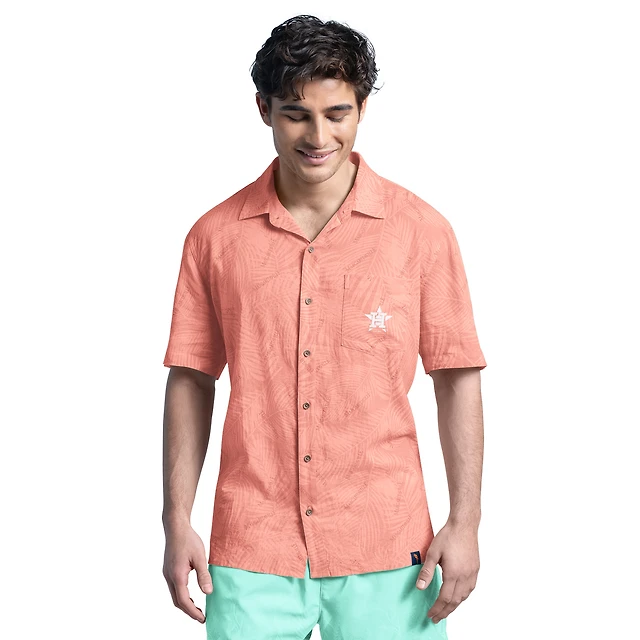 Men's Margaritaville Coral Houston Astros Linen Party Button-Up Shirt