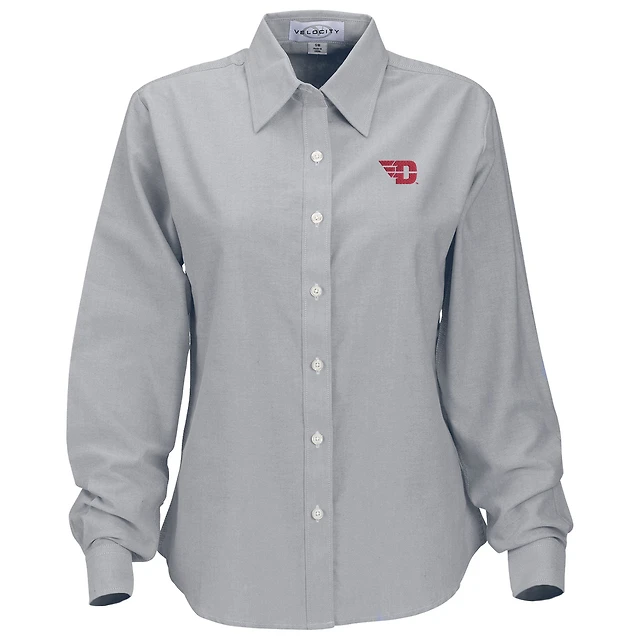 Women's Gray Dayton Flyers Velocity Oxford Plus Button-Up Long Sleeve Shirt