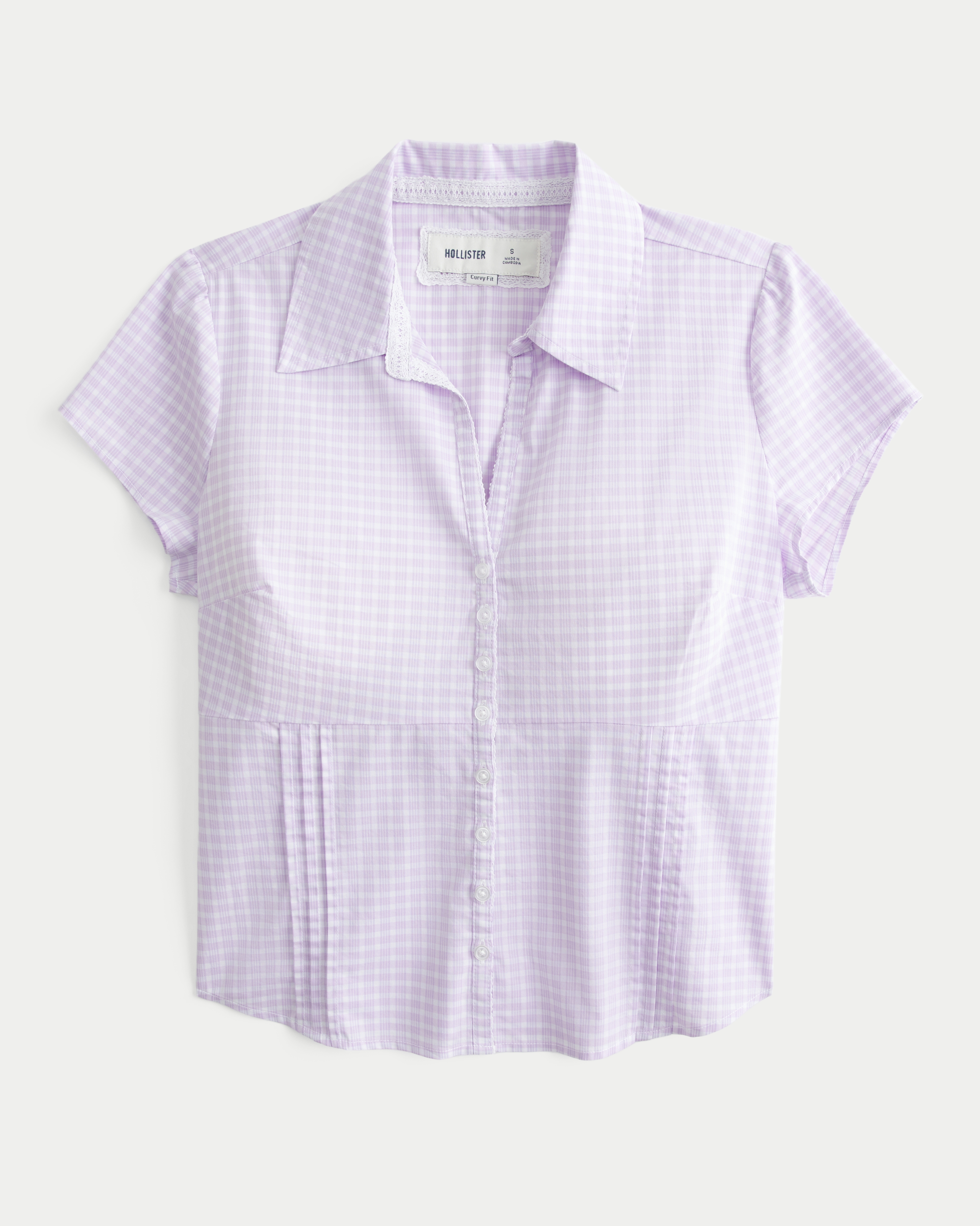 Curvy Short-Sleeve Pleated Shirt