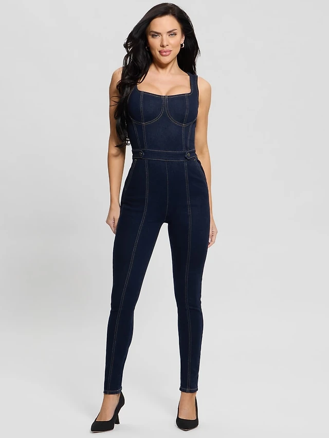 Lina Dark Denim Sleeveless Wide Legs Jumpsuit