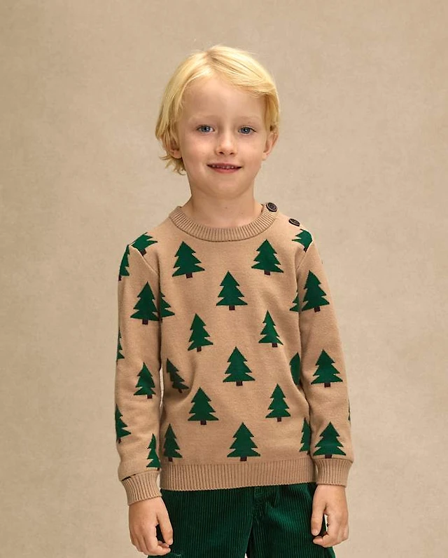 Boys Intarsia Pine Tree Sweater - Royal Christmas