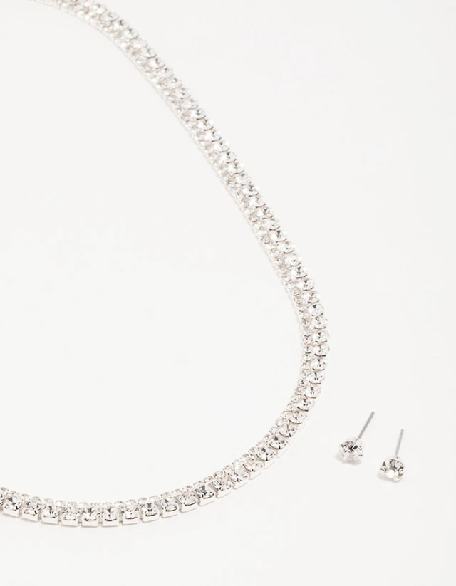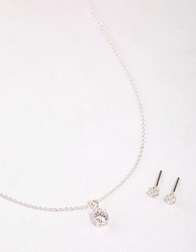 Silver Sapphire Teardrop Necklace & Earrings Set