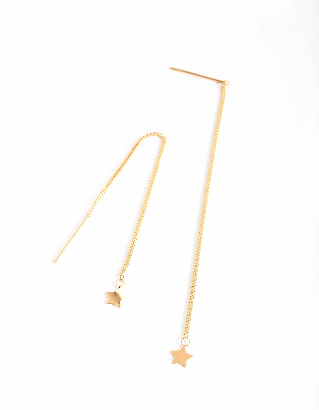 Gold Plated Sterling Silver Star Thread Through Earrings