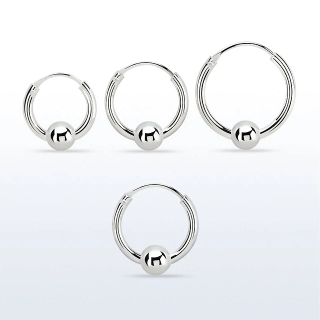 Pair of 925 Sterling Silver Ball Sleeper Hinged Hoop Earrings
