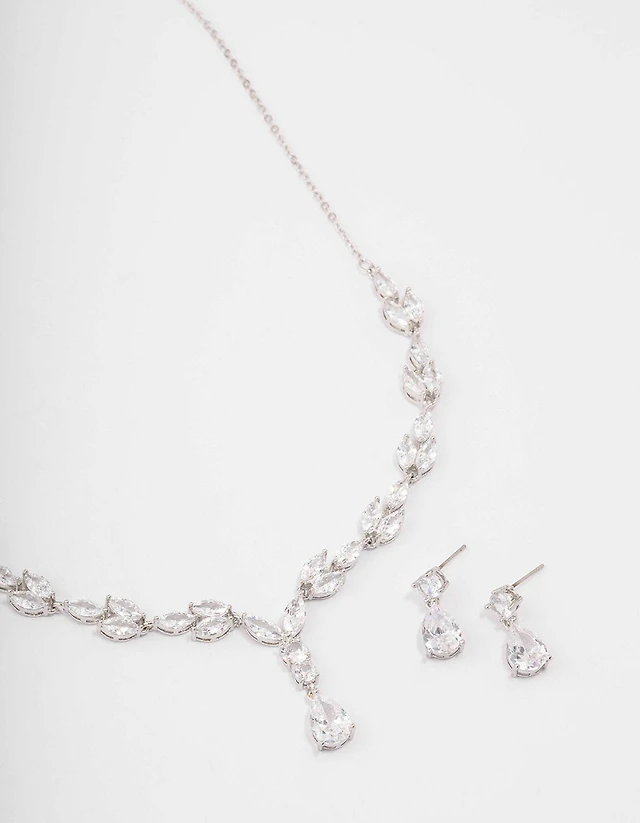 Silver Pear Diamante Necklace & Stud Earrings Set