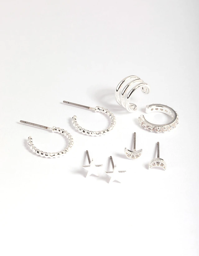 Silver Multi-Shape Cubic Zirconia Stud Earrings 6-Pack