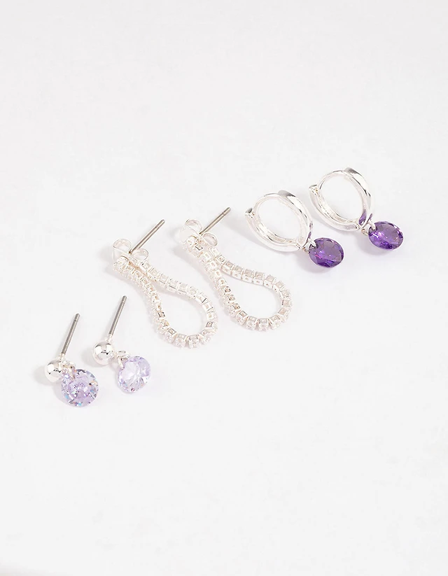 Pear-Shaped and Marquise Amethyst with 0.067 CT. T.W. Diamond Double Frame Drop Earrings in Sterling Silver
