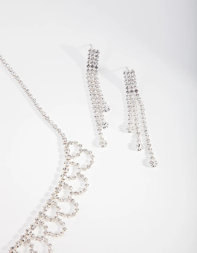 Silver Pear Solitaire Earrings & Necklace Giftbox