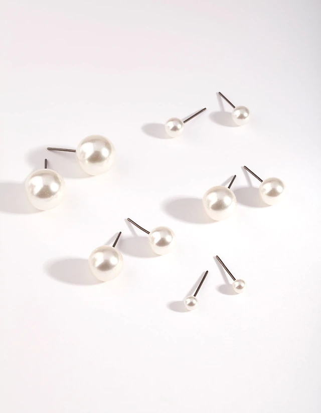 Silver Graduated Pearl Earring 5-Pack