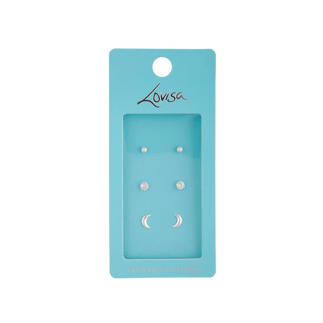 Sterling Silver Diamante Moon Earrings Trio