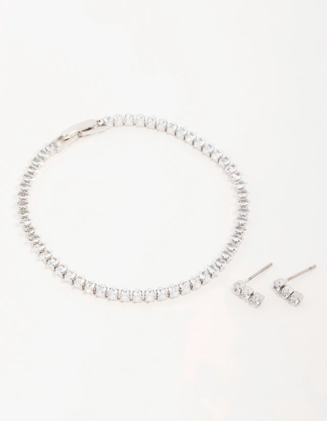 Silver Cubic Zirconia Earrings & Tennis Bracelet Set