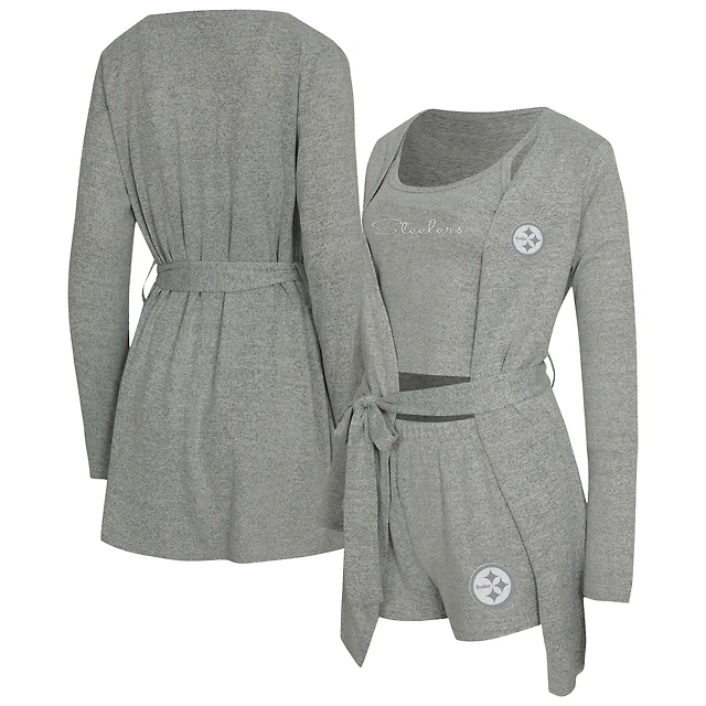 Women's Concepts Sport Heather Gray Pittsburgh Steelers Rigor Tank, Short & Robe Set