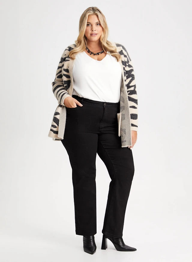 Majora Patterned Roll Up Sleeve Wrap Cardigan - Black