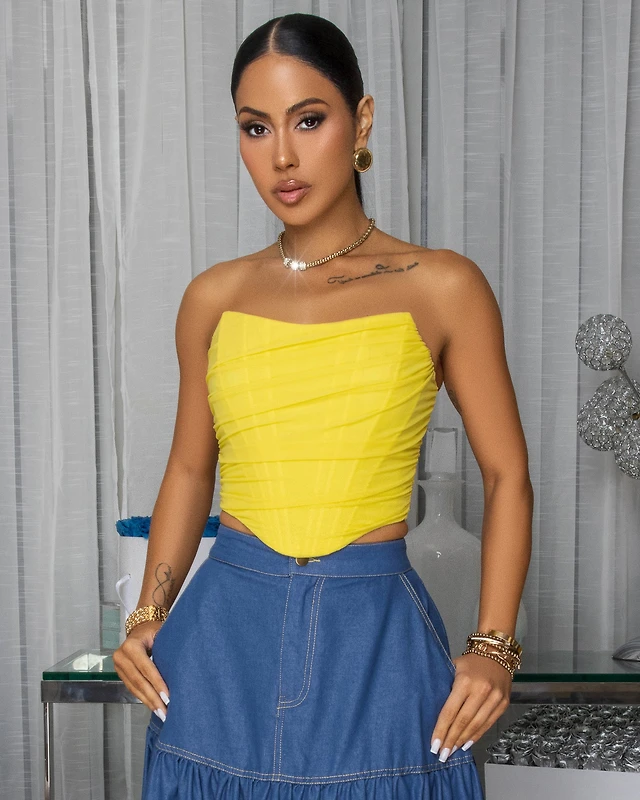 *Ibrana Brown Rhinestones Mesh Crop Top