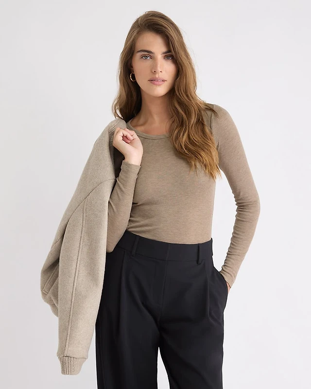 Wool-Blend Scoop-Neck Long-Sleeve Top